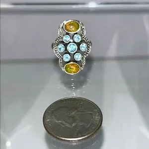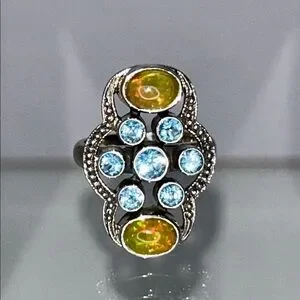 NWOT Genuine Ethiopian Opal Blue Topaz Gemstone Sterling Silver Ring Bohemian