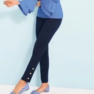 Talbots Hampshire Ankle Navy Blue Button Cuff Stretch Trouser Pants