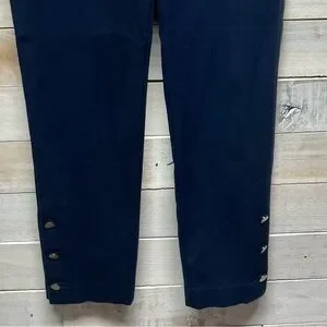 Talbots Hampshire Ankle Trouser Pants Womens 8 Navy Blue Button Cuff Stretch