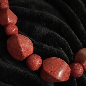 Gorgeous red coral necklace is ready for your next outfit. Approx 18” with extender with sterling silver clasp.