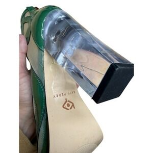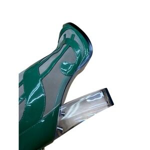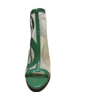 LEFT HEEL HAS A RESIDUE ON IT THAT WILL NOT COME OFF.PLEASE SEE PICTURES FINAL SALE!! Command attention with these striking Katy Perry Richie Mesh Patent booties. The vibrant green patent leather wraps around the toe, heel, and ankle, creating bold dollar sign cutouts that reveal a delicate mesh underlay.
