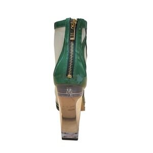 dollar sign heels, mesh booties, patent leather, statement shoes, clear heel, green heels, designer inspired, fashion boots, evening wear, unique heels, glamorous, bold style