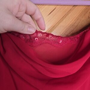 Vtg Delicates Sexy Red Satin Sheer Cowl Neck Short Slip Dress Large