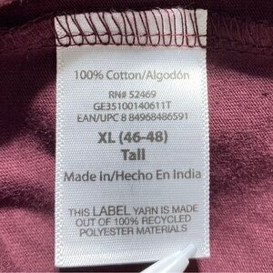 George Mens Long Sleeve Cotton Crew T-Shirt Size XL 46-48 Tall Windsor Wine