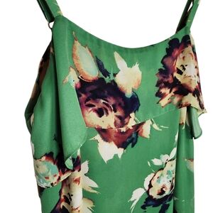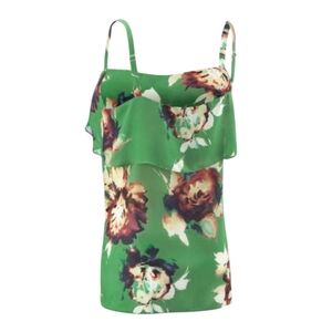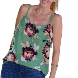 CAbi New Bloom Floral Tank Green Sleeveless Ruffle Flowy Lightweight 3264