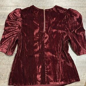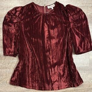 Leyden dark red/maroon crushed velvet poof short sleeve top. 100% polyester. Back zipper. Crew neck. Brand new with tags. size Large
