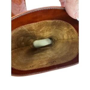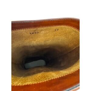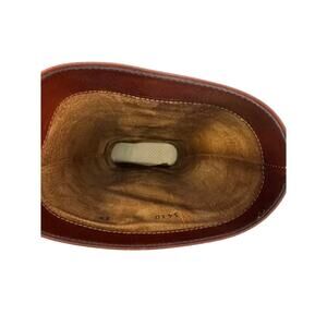 The "GIAMPAOLO" Italy Brown Knee High Leather Boots in size 39 are the perfect country cowgirl style boots for horse enthusiasts. These boots feature a classic round toe and zip closure, with a low block heel for comfort. The rich brown color and cowgirl theme make them versatile for various occasions, from weddings to casual outings. Made in Italy with high-quality leather, these boots are both stylish and durable. Perfect for all seasons, these knee-high boots are a must-have for any fashion-forward woman looking to make a statement.