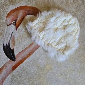 3/$25 Vintage Baby Phat Winter Hat Beanie Faux Fur Knit Cream Off White Soft