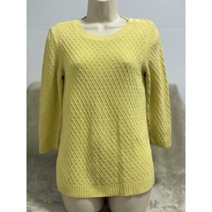 TALBOTS Button Shoulder Sweater M Yellow Cotton Crewneck Retro Twee Preppy