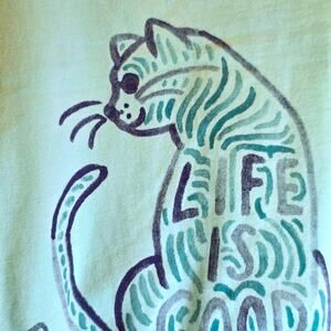 Life is Good Cat Crusher Shirt Womens Short Sleeve Sz Large Green