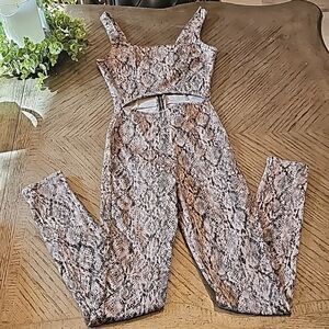 Topshop snakeskin jumpsuit size 2 with front cutout, excellent new condition