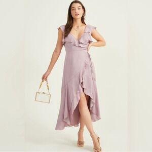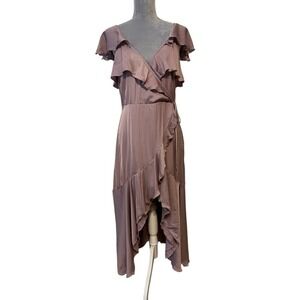 ALTAR'D STATE Louise Satin Faux Wrap Dress in Elderberry Mauve Purple Midi LG