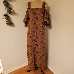 & Other Stories Blue and Gold Brocade Dress