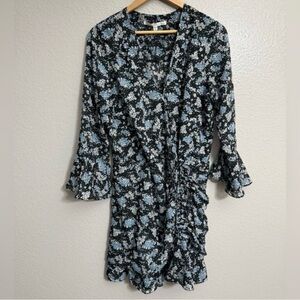 Elegant floral dress featuring a chic black and white design. Perfect for any occasion.