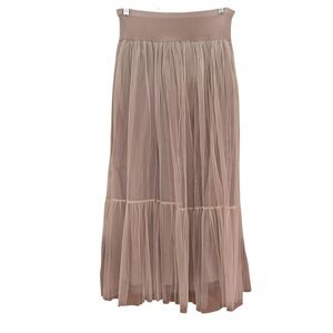 Keval Netted Skirt Taupe Mesh Tulle Midi Skirt Elastic Waist Women’s Small AA