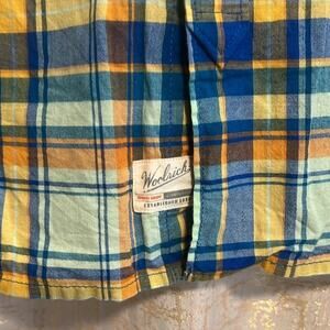 Woolrich Blue & Yellow Plaid Button Up Top 100% Organic Cotton Men's Size Large!