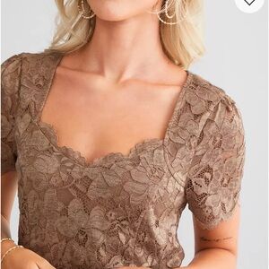 Chic lace blouse with short sleeves. Perfect for stylish outings. floral lace adds the perfect touch of romance to your look.