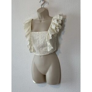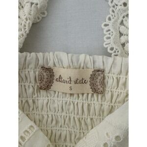 NEW Altar'd State Womens Small Ivory Peasant Crop Top Blouse Eyelet Lace Boho