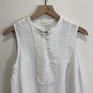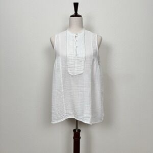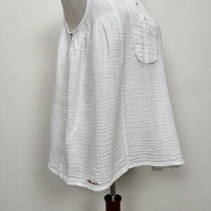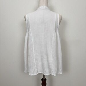 Gauzy White Cotton Top Womens Large Beachy Relaxed Boho Tropical Breathable