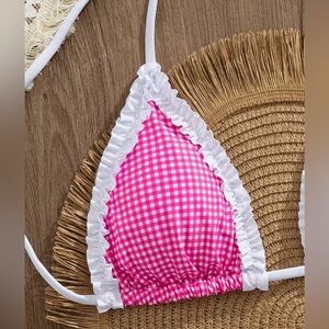 Pink Gingham Ruffle Side Tie Bikini Set