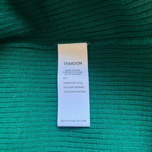 Thakoon 100% Merino Wool Emerald Green Button Up Turtleneck Soft Quiet Luxury M