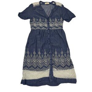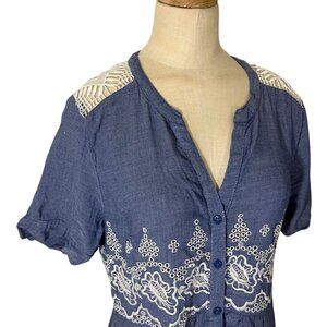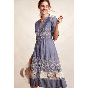 Anthropologie Moulinette Soeurs Waters shirt dress, blue chambray and white lace