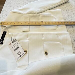New With Tag ZARA Officecore Women’s White Lined Blazer Jacket in Size Small with Soft Gold Button Details Quiet Luxury Boardroom Chic