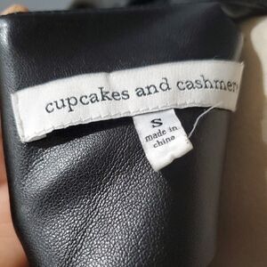 Cupcakes & Cashmere Black Boxy Faux Leather Blouse with Puff Sleeves