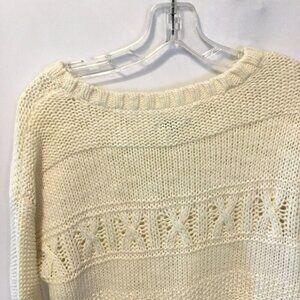 American Eagle Outfitters Fisherman Sweater Chunky Cable Knit Long Ivory Medium