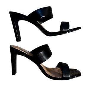 Dolce Vita Black Patent Crocodile Embossed Block Heel Mules Slides Womens Size 6