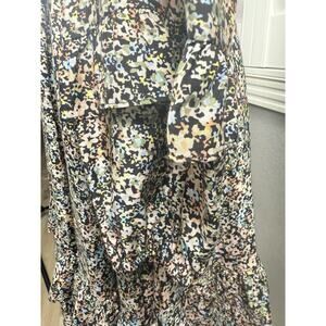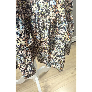 Amour Vert Women's Cottage Core Tiered Mini Dress Silk Bishop Sleeves Floral Sm