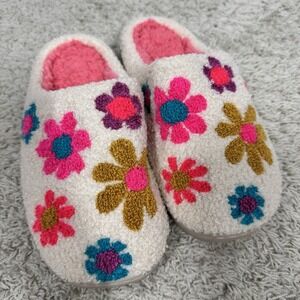 Natural Life Fuzzy Icon Slip On Sherpa Slippers In Cream Daisy Size M Retro Cozy