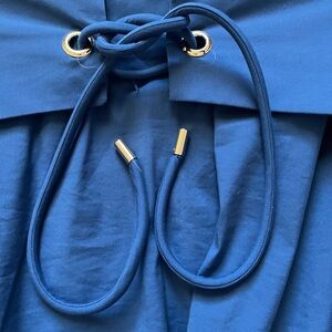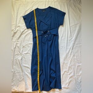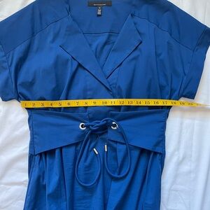 This elegant royal blue dress from White House Black Market combines effortless sophistication with everyday comfort. Featuring a flattering V-neckline, short cuffed sleeves, and a soft A-line silhouette, it’s designed to move beautifully with you. The wide waist belt with drawstring detail creates a defined shape, while the lightweight fabric ensures all-day wearability. Perfect for work, brunch, or special occasions, this dress transitions seamlessly from day to night. Yes- side pockets!