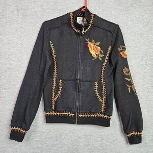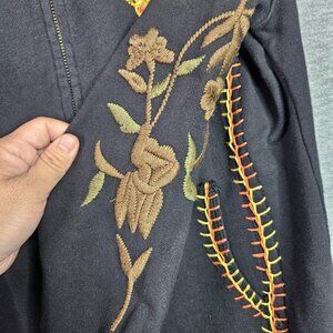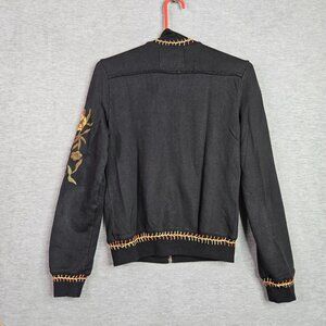Sugar Lips Women’s Black Embroidered Floral Full Zip Sweatshirt Size S