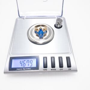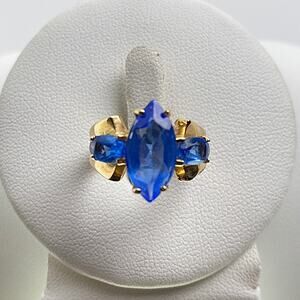10K Gold Tanzanite Ring Marquise Center 3 Stone Statement Size 6