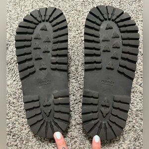 These stylish Gucci black slides featuring bold red and green stripes are perfect for casual wear.