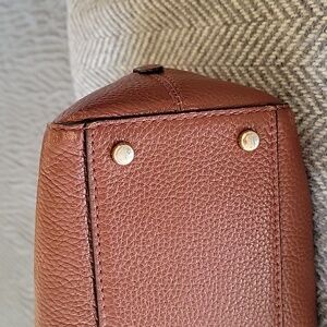Chic Kate Spade satchel in brown leather. Features dual handles and gold-tone hardware. In a beautiful warm, roast brown colour, this bag in supple leather is perfectly sized for everyday use.