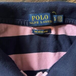 Polo Ralph Lauren Navy Blue & Pink Cotton Striped Mesh Mini Dress Size Small P