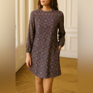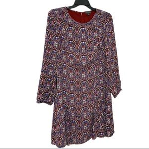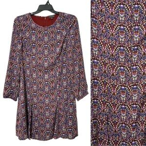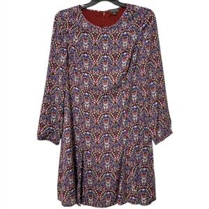 The Limited Paisley Long Sleeve A-Line Flare Purple Boho Drop Waist Dress Sz 12