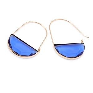 Anthropologie Navy Blue Glass Crescent Hoop Gold Earrings