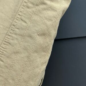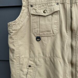 Versatile beige vest with multiple pockets. Ideal for layering and outdoor activities. Durable and stylish design. Pre owned - L