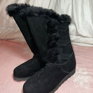 BearPaw Black Winter Boots with Faux Fur