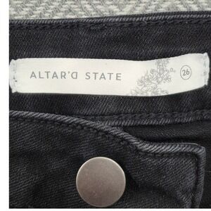 Altar State Black High Waisted Wide Leg Crop Jeans Size 26 Button Fly Raw Hem