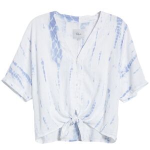 RAILS Thea Tie Waist Linen Blouse Top, Tie-dyed, Blue/White, Medium, NWT