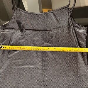 We uploaded 2 new photos with the measurements, as well as a video. The video shows the stretch of the fabric really well. The chest measurements laid flat are at just around 15 inches. The hip measurements, also laid flat is at approximately 18 inches.