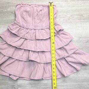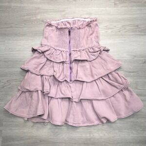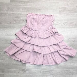 So Me Denim Strapless Tiered Ruffle Mini Dress Sz Small Smocked Mauve Pink