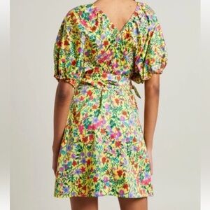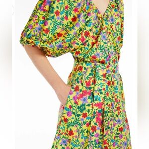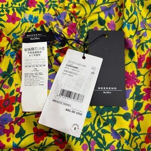 Max Mara Weekend Curvone Cotton Yellow Floral V-Neck Belted Dress NWT $485