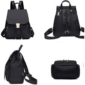 Mini Nylon Backpack for Women Lightweight Travel Purse Black Small Trendy Bag