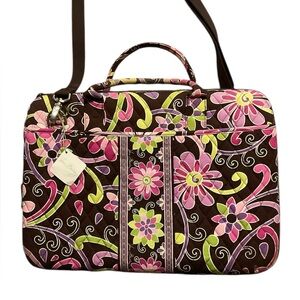 NWT Vera Bradley Vintage Laptop Portfolio Purple Punch Floral Shoulder Crossbody Bag Y2K, pink green flowers with brownish-black quilted background. Double handle with Crossbody strap. New with tags except the interior has small signs of wear shown. Perfect for travel, school, workwear, business. Great collectible gift! Final Sale! Will ship right away. Check out my other designer items.
