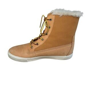Timberland Teddy Fleece Fold Down Wheat Nubuck Boots Women's Size 10